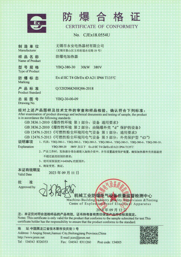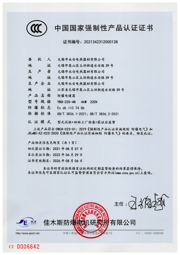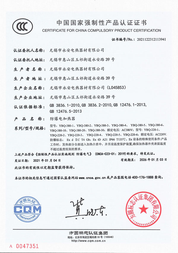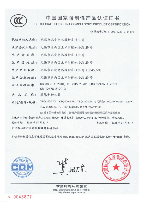 | CCC證書-防爆電加熱器 |