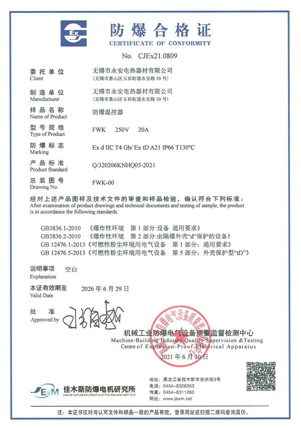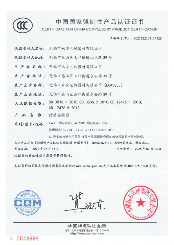 | CCC證書-防爆溫控器 |