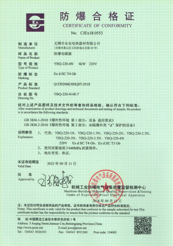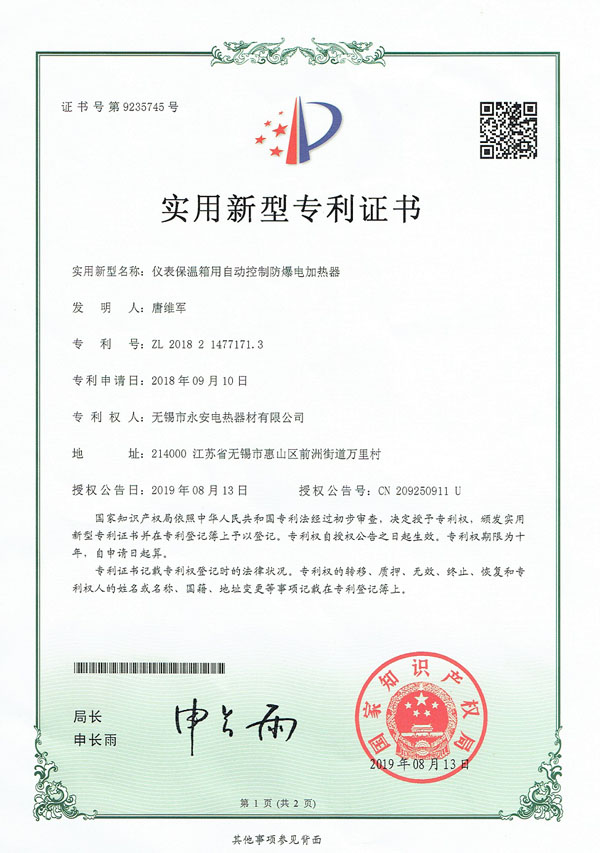 | 防爆證-箱體防爆電加熱器 |