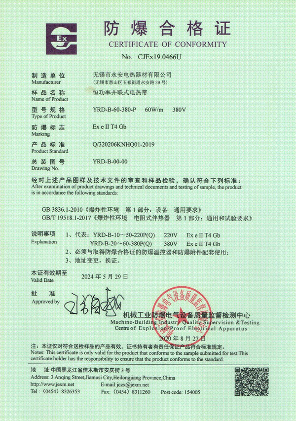 | 防爆證-恒功率電熱帶 |