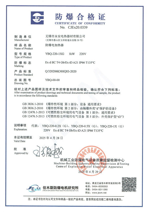 | 防爆證-防爆電加熱器 |