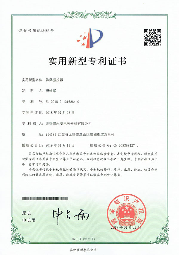 | 專利實用-防爆溫控器 |