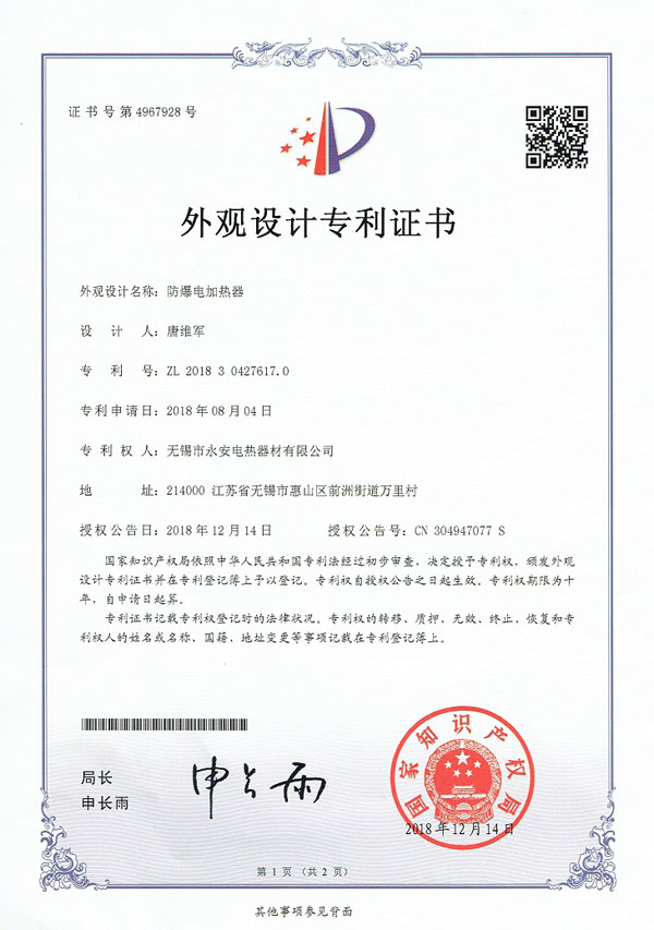 | 專利外觀-防爆電加熱器 |